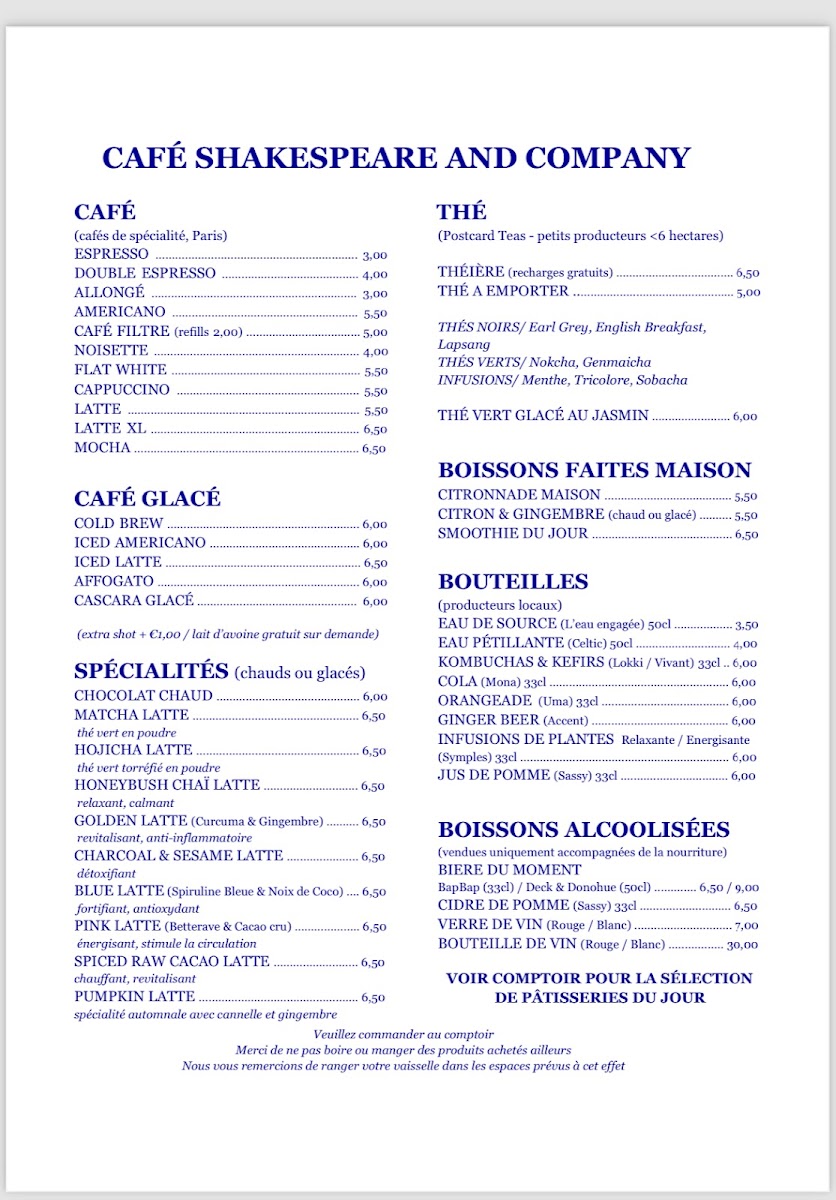 Welcome to Shakespeare and Company Café, a hidden gem nestled at 35 Rue de la Bûcherie, Paris, where culinary delights meet literary ambiance. This charming café boasts a menu that reflects its artistic spirit, offering a selection of exquisite drinks and delectable pastries.
